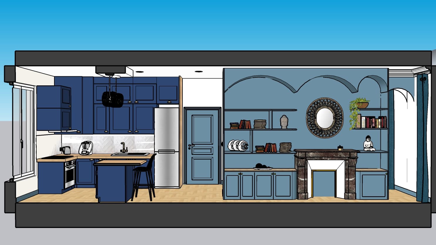 Les clients souhaitaient une ambiance épurée dans un style scandinave dans les tonalités de bleu.